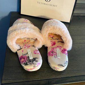 Victoria's Secret Pink Floral Satin Slippers Size M (7-8)