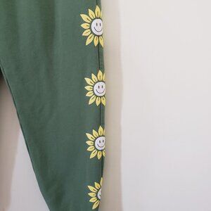 Victorias Secret Pink Green Sweatpants Smiley Sunflower Size M Comfy Loungewear