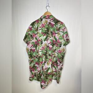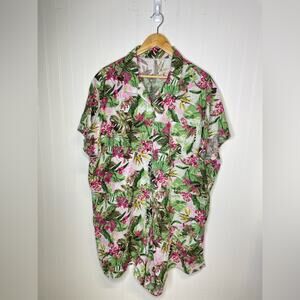 Victoria's Secret Pink Green Tropical Linen Cotton Cover Up Romper Women's XXL
