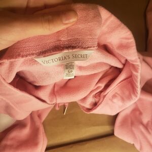 These women’s Victoria’s Secret sweatpants offer a cozy and stylish look, perfect for lounging or casual wear. Made from a soft pink fabric, they feature an elastic waistband with an adjustable drawstring for a comfortable, personalized fit. The front showcases a charming heart graphic design, including a sequined “VS” heart for a touch of sparkle. Two side pockets add functionality, while the relaxed fit ensures all-day comfort. Size S/P (Small – Regular), these sweatpants are ideal for adding a cute and comfy piece to your wardrobe. Excellent for pairing with hoodies, tees, or matching loungewear tops.
