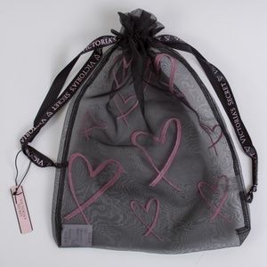 Victoria's Secret Pink Heart Lingerie Bag with Ribbon drawstring closure.