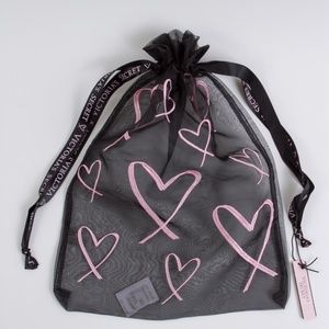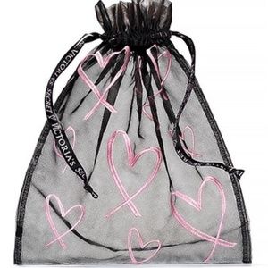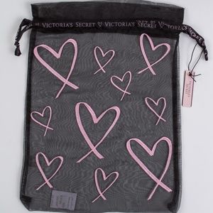 Victoria's Secret Pink Heart Lingerie Bag with Ribbon drawstring closure.
