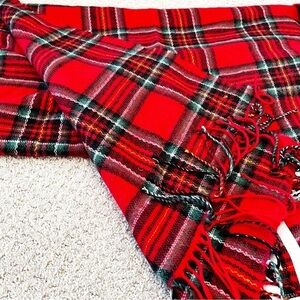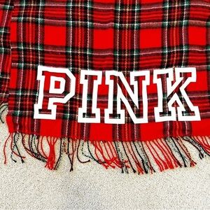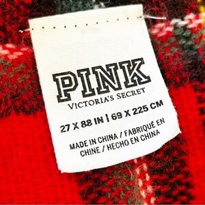 Victoria's Secret Pink Holiday Blanket Scarf Red Plaid Fringe Soft Christmas