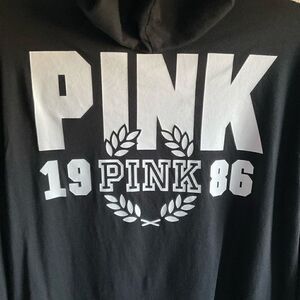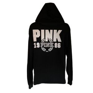 Victoria’s Secret Pink Hoodie Drawstring Black Graphic PINK 1986 Logo XS