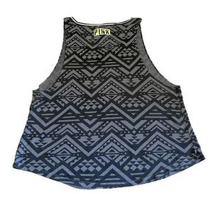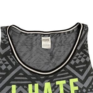 Victorias Secret Pink I Hate Running Graphic Tank Black Grey Aztec Green L #1231