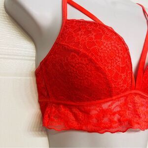 Victoria's Secret Pink Lace Bralette Bra Lightly Lined Wireless Strappy Sz Small