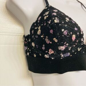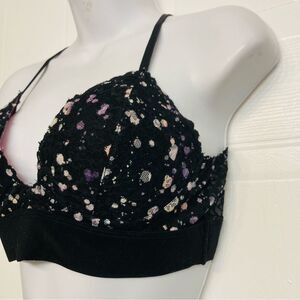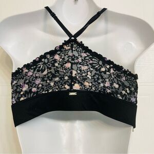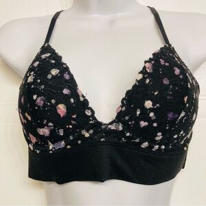 Victoria's Secret Pink Lace Bralette Bra Racerback Lightly Lined Sz Small Black