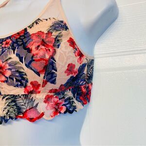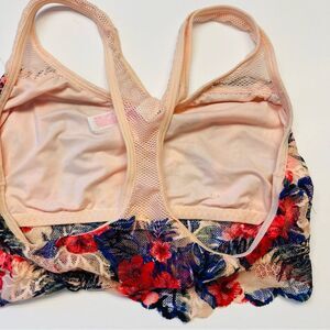 Victoria's Secret Pink Lace Bralette Bra Racerback Unlined Sz XS Tropical Floral