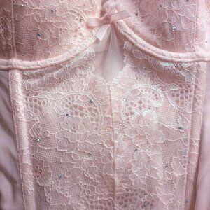 Victoria’s Secret Powder Pink Lace Rhinestone Lingerie Garter Hooks Fairy Size 34B