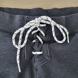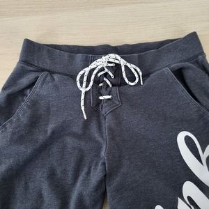 Victoria's Secret Pink Lace Up Shoestring Logo Joggers Dark Gray White Medium