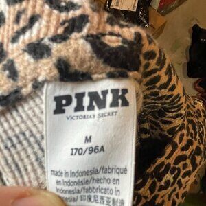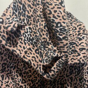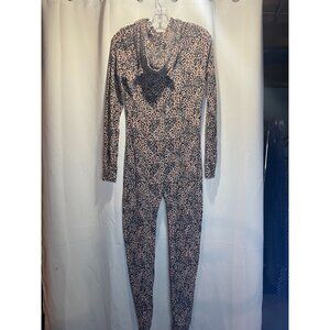 This VS PINK hooded leopard print onesie offers a cozy design with a button front closure. Ideal for lounging, the soft fabric ensures warmth and comfort. Background is a nude/blush pink, not a cotton candy pink. Great for Halloween!