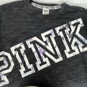 Victoria's Secret Pink Logo Campus Crew Sweatshirt Black Marble Logo Small