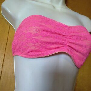 Victoria's Secret Pink Logo Women's Medium Lace Bandeau Tube Bra Top Strapless