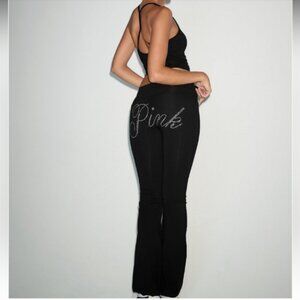 Victoria's Secret Pink M L XL - Yoga Pants Rhinestone Bling Foldable Waist Flare
