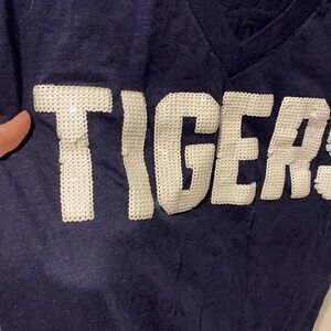 Size medium v neck tee with white sequin Tigers