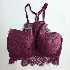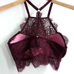 Victoria's Secret Pink Maroon Push Halter Lace Bralette