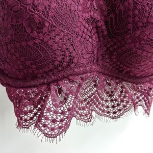 Victoria's Secret Pink Burgundy Push Up Eyelash Lace Halter Bra. Lace halter over a padded underwire bra, scalloped edges, adjustable shoulder straps, scalloped Edge bottom, pop over style. Great pre-owned condition.
