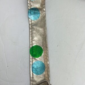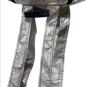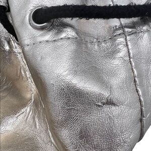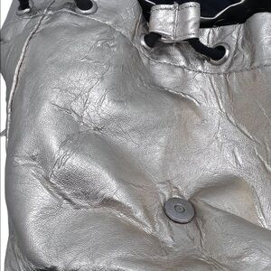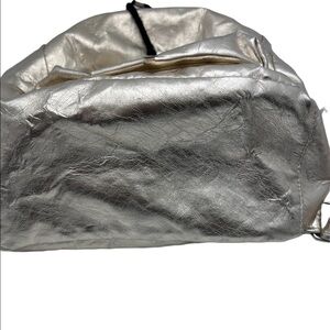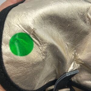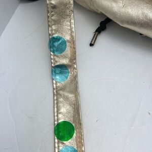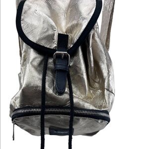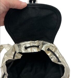This adorable mini backpack Gold Metallic has small amount wear on the bag and on handles see photos with dots