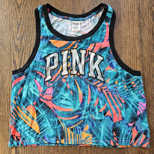 Victoria’s Secret Pink Multicolor Tropical Floral Logo Tank Top Size Women’s Med