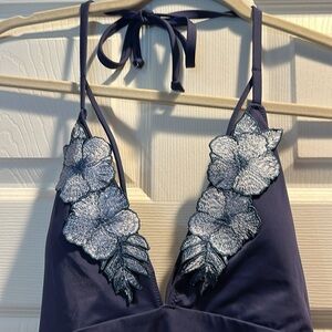 Victoria's Secret Pink Navy Strappy Floral Halter One Piece Swimsuit M