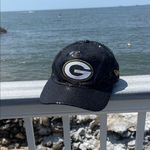 Eye-catching Victoria’s Secret New Era NFL hat with black sequins. Features a bold Green Bay Packers logo in gold, green and white sequins. Like new with labels on brim - adjustable