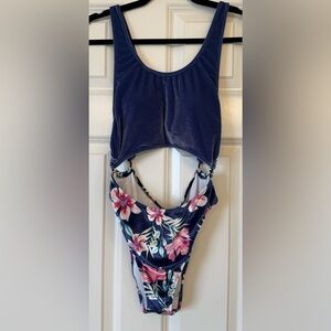 Victoria’s Secret Pink One Piece Cut Out Velvet Hawaiian Print Swimsuit