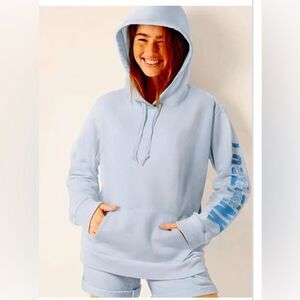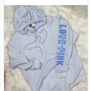 Victorias secret PINK campus notch neck everyday lounge pullover hooded sweatshirt/hoodie in blue hydrangea