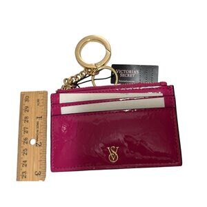 The Victoria's Secret card holder provides a stylish and functional solution for organizing cards and keys. Its vibrant pink patent leather offers a luxurious and fashionable look, while the gold-tone keychain adds convenience for daily use. Ideal for keeping essentials secure and accessible.
