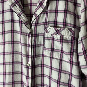 Pink plaid button down pajama top from Victoria’s Secret. Size S. Approximate flat lay measurements- Bust: 19.5” across from armpit to armpit. Length: 25”. Gently preowned condition with no tears or stains.