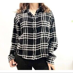 Very comfortable Cropped Plaid Shirt Black & White long sleeve Pink Original Brand.