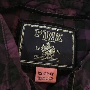 Victoria’s Secret Pink Plaid Ruffle button down purple black small