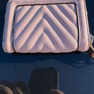 Chic pink quilted wallet. Features signature logo. Compact and stylish design. New work out tags doe shave some marks as seen in pic