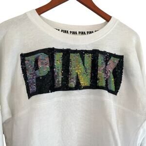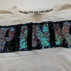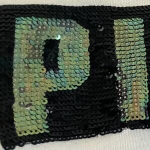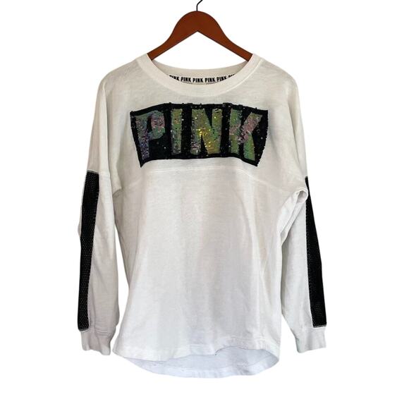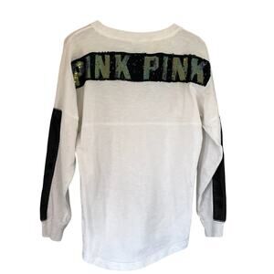 Victoria's Secret Pink Rainbow Sequin/Bling Black Varsity Stripe Long Sleeve, S