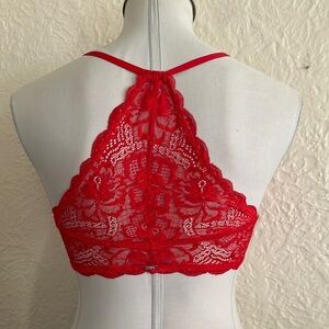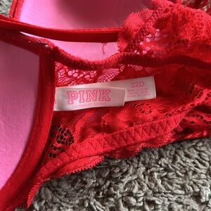 Victoria’s Secret Pink Red Floral Lace Racerback Bra Front Closure 32D
