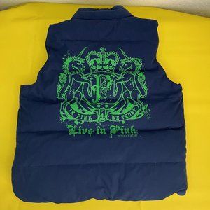 Victoria's Secret Pink Down Puffer Vest, Size XS, Blue and Green.