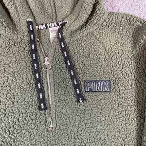 Victoria's Secret Pink Sherpa Half-Zip Pullover Hoodie Green Sz Small Soft Girl