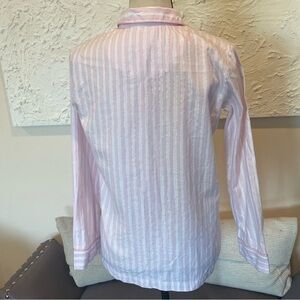 Victoria’s Secret Pink Silver Striped Pajama Buttom Down Shirt Flannel Sz XS NWT.