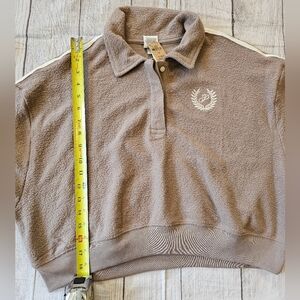 Victoria's Secret Pink •Size Large• Reverse Fleece Polo Cropped New w/ Tags from Fall 2023 line. Cure Academia Style. Please see measurements in photos provided. Cross posted on other selling platforms. I ship out same or next day. Thanks for looking!