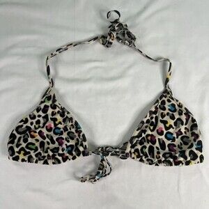 Victorias Secret Pink Size M Rainbow Cheetah Print Tie Bikini Top Y2K Lisa Frank