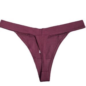 Victorias Secret Pink Soft Cotton Thong Panty Script Logo Burgundy