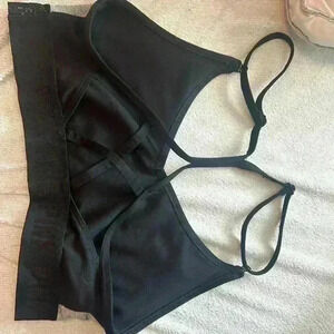 Victoria’s Secret Pink Strappy Sports Bra Lightly Padded Gray Floral Logo