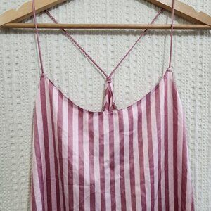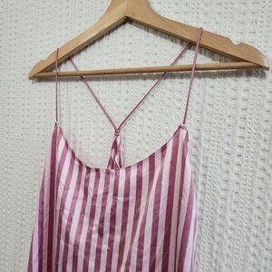 Victoria's Secret Pink Stripe Silky Satin Cami Tank Top Women's Size Large