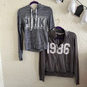 Victoria’s Secret Pink Sweatshirt Bundle Gray 1986 Zip White Logo Hoodie Small