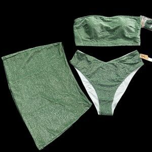 Victorias Secret Pink Swim Shimmer Padded Bikini top , Bottom and skirt Set L