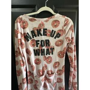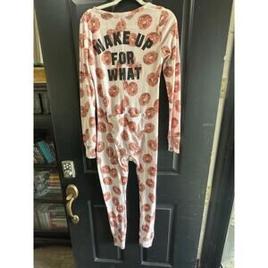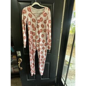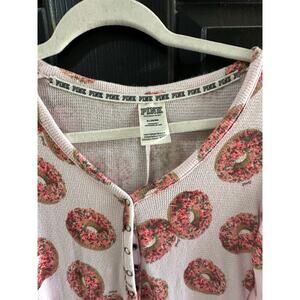 Victoria's Secret Pink Thermal Long Pink Donuts One Piece Pajamas Size Medium