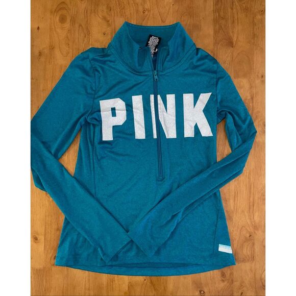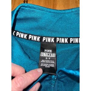 Victoria's Secret Pink Ultimate Jacket S Teal 1/2 Zip Thumb Holes Spell Out Logo