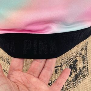 Lightly lined. Wireless. Has slots for padding but padding is missing (Not included). PINK logo elastic band. Gym to swim technology. Scoop neck. 4-way stretch. Wicking fabric. Quick dry.