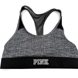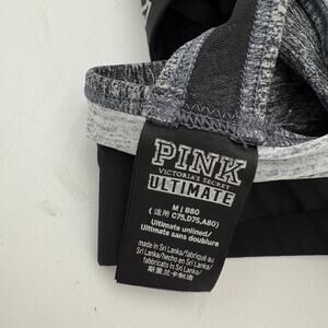 Victoria's Secret Pink Ultimate Unlined Grey Black Halter Sports Bra Size Medium