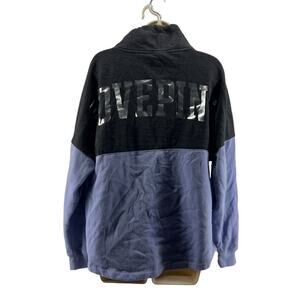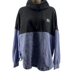 Victoria's Secret Pink Varsity CowlNeck Pullover Colorblock Periwinkle Grey M