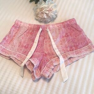 Victoria’s Secret super soft and cute lounge pajama shorts, elastic waistband with satin drawstring tie, 56% cotton and 44% modal, in good preowned condition, no flaws.